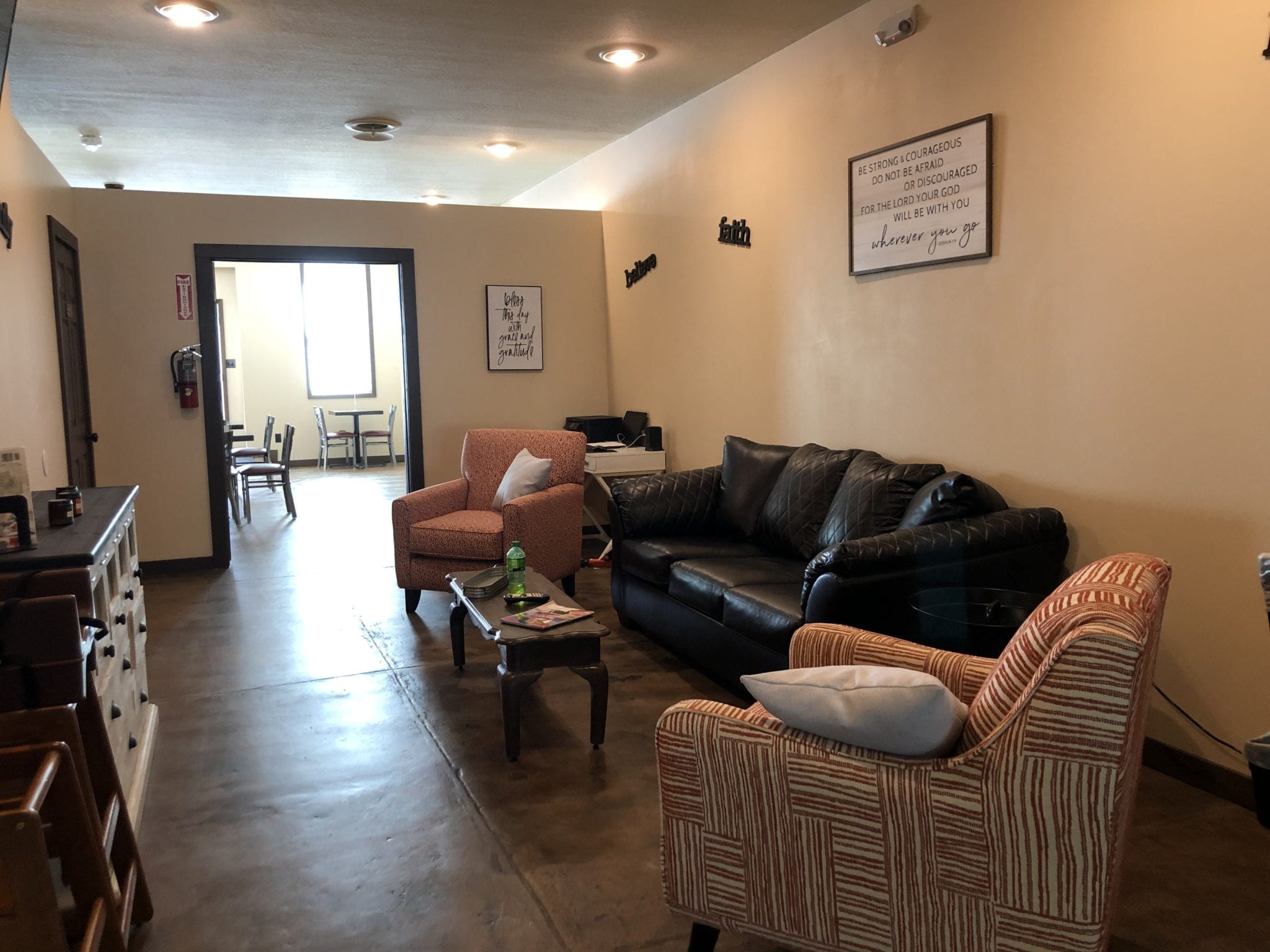 There are several seating options inside Uprooted Cafe. In fact, there is even a relaxed area near the back where a television and a couch sit, in case you are ever looking for a place to drink coffee and get some homework done (that last bit is just for any of you adults reading; college students don’t actually do homework).