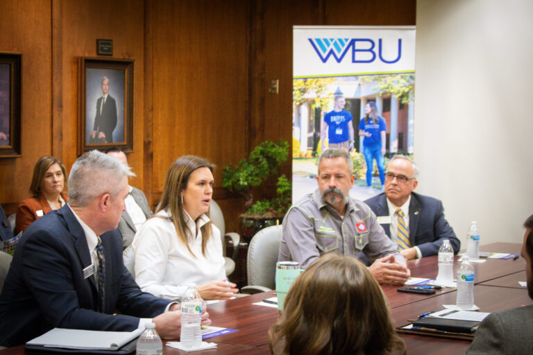 Arkansas Gov. Sarah Huckabee Sanders visited the Williams Baptist University campus Thursday to discuss the Williams Works Initiative in a roundtable discussion that included university leaders, WBU students and leaders from the state of Arkansas to learn how both the state and school can better serve one another.